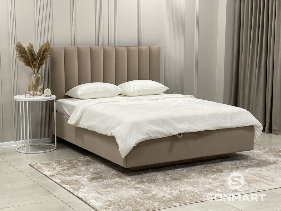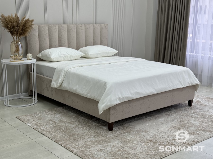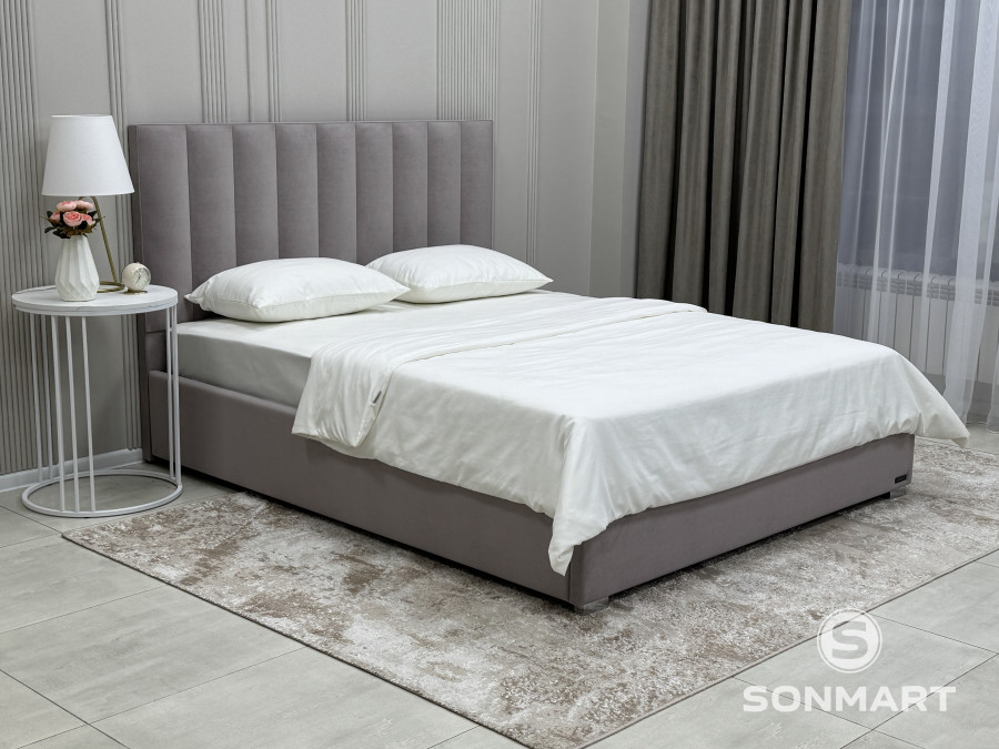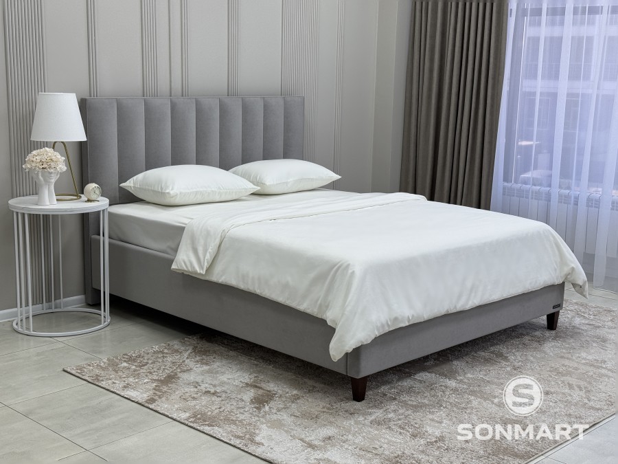 Каркас кровати выполнен из высококачественного ЛДСП, что гарантирует долговечность и прочность конструкции. В базовой комплектации предусмотрены хромированные ножки высотой 3,5 см: