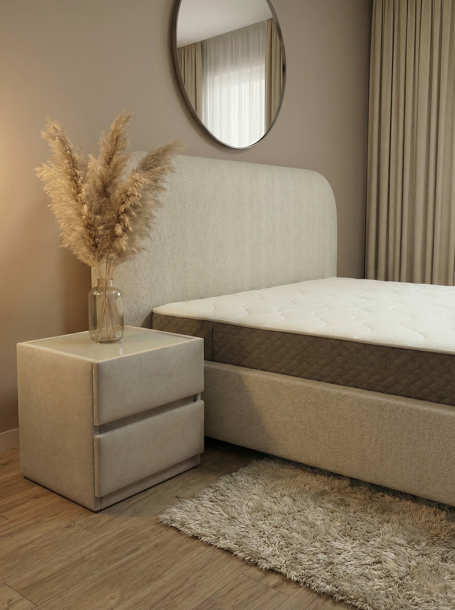 Кровать Мия 120*190 см с изголовьем в трендовом минималистичном дизайн. Эта кровать создана для тех, кто ценит комфорт, мягкие формы и современный стиль. Её главное украшение — объёмное изголовье с плавными закруглёнными линиями, создающее атмосферу уюта и спокойствия в спальне.