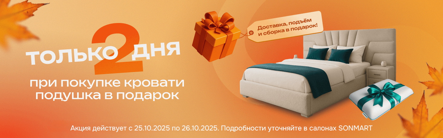 Делайте выгодные покупки! Всего два дня акция: при покупке любой кровати в салонах SONMART - подушка с эффектом памяти в подарок!🎁